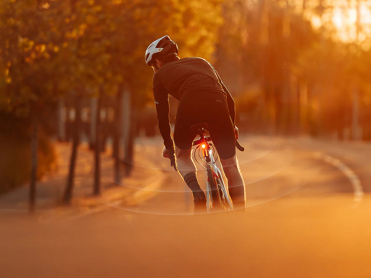 Syncs flash patterns with nearby taillights for increased visibility.