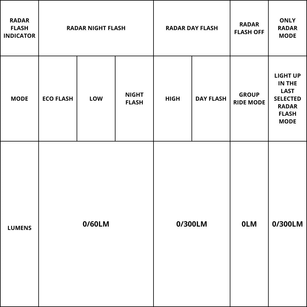 Separate buttons for taillight and radar management.